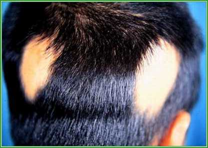 片状脱发,头皮光亮 ——斑秃(血虚受风) |