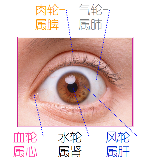| 瞳仁 | 瞳孔,后方晶体, 玻璃体,脉络膜 | 水轮 | 肾 |