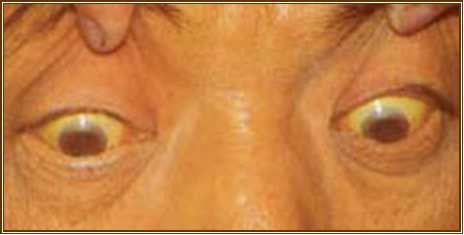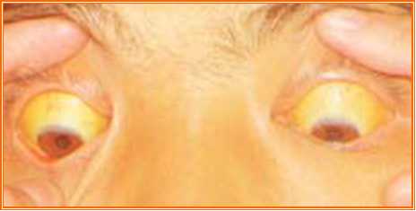 白睛发黄——黄疸病(湿热内蕴/寒湿入侵)。