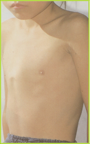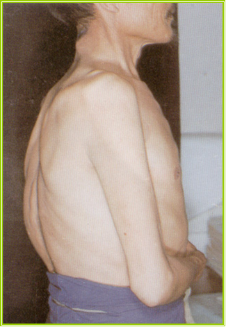 胸椎后突,前胸塌陷——龟背(肾虚失养/ 脊椎疾患);