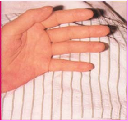 医生以拇食指压迫病人甲端,使之褪色,再行放开,观察血色变化。