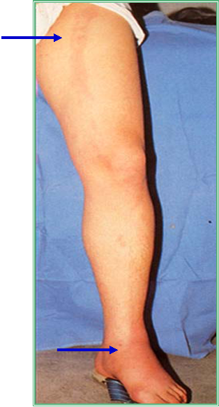肢体肿胀——热壅血瘀/水肿病/丝虫病。