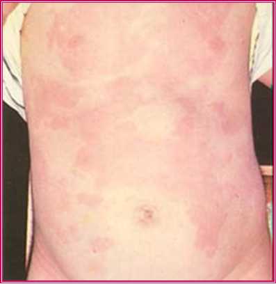 麻疹:疹色桃红,形似麻粒,先见颜面,渐及躯肢,逐渐消退——外感风热时邪。