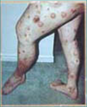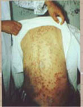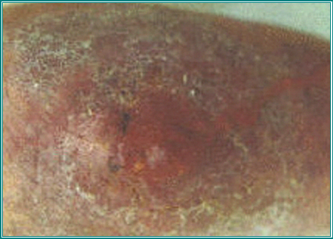 阳斑:色多红紫,形似锦纹,身热脉数——温热邪毒,内迫营血;
