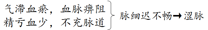 ① 尺脉虚细涩——精亏血少(虚闭)