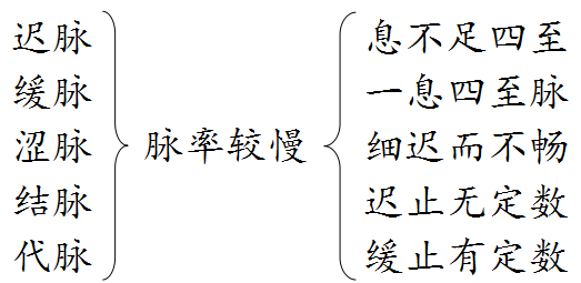 紧脉→缓脉 (紧张对举) 缓脉→代脉 (均匀对举)