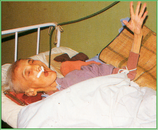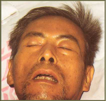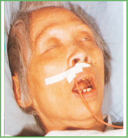 |  | 精神萎靡, 面色无华, 两目晦暗, 息微或喘, 言语错乱, 形体羸瘦, 动作艰难, 反映迟钝。 |