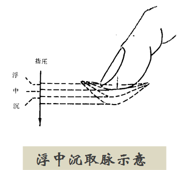 3.脉象——医生指感下脉动应指的形象。是脉位(浅、深)、脉数(频率、节律)、脉形(长短、大小)和脉势(有力、无力)各方面的综合形象。