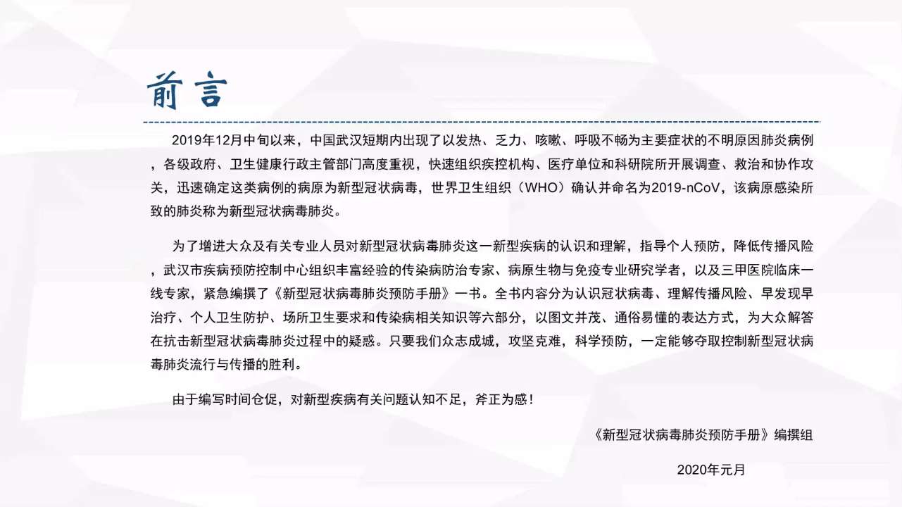 新型冠状病毒肺炎预防手册(全文)