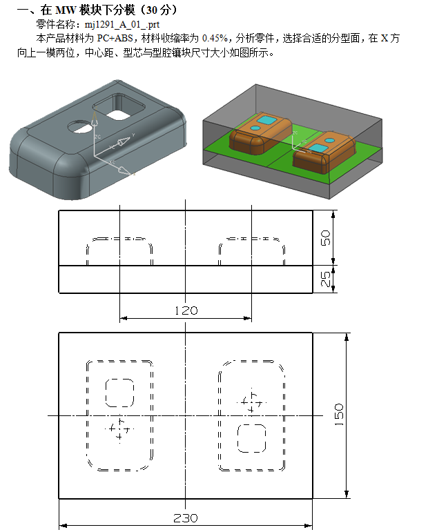 下载源文件 mj1111_A_01_.prt(下载附件 172 KB),将“mj1011”改为你的班级名称,并在“01_”后添加你的座号(两位数),完成如下图所示练习。