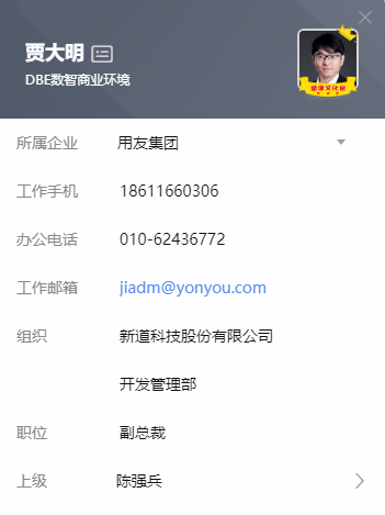 2009年2月至2011年1月任用友软件股份有限公司市场经理、网络营销总监、在线业务部经理。2011年1月至今,任新道科技新道在线部门经理、智慧产品部总经理、新道云与教育服务总经理、新道云与产品研发本部总经理、助理总裁,现任副总裁。
