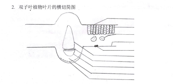 通过切片观察,绘制双子叶、单子叶叶片横切结构简图,并标注名称