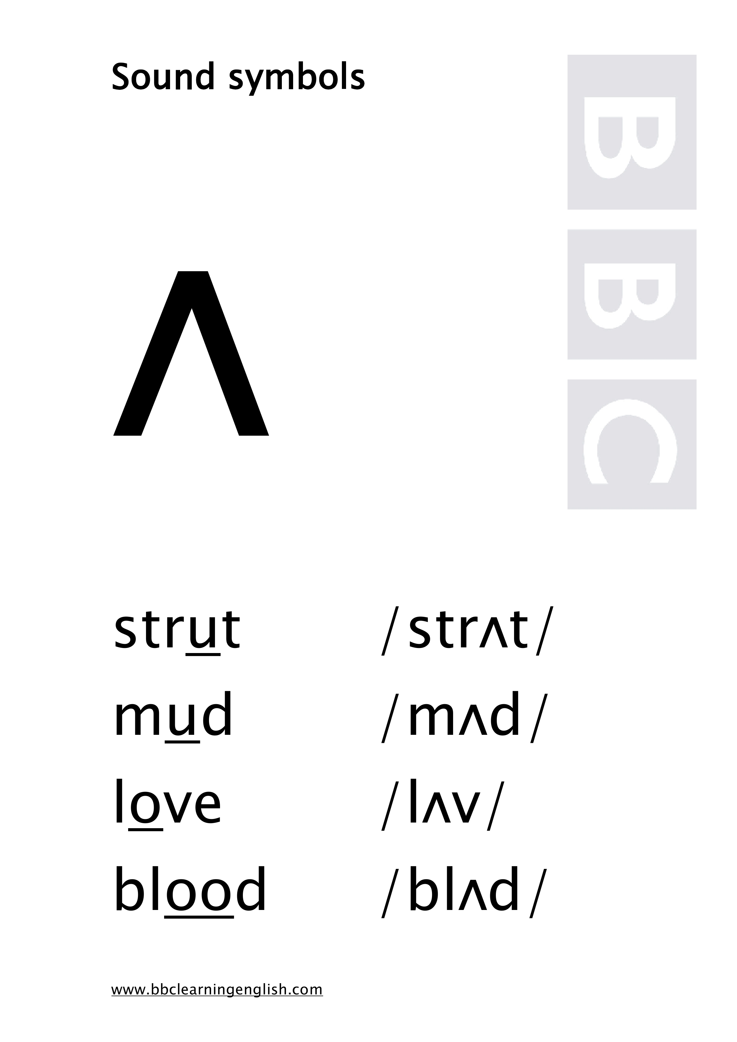 4、/ʌ/和汉语中的"啊"很相似,但相比之下/ʌ/的开口程度小些,发音更急促。